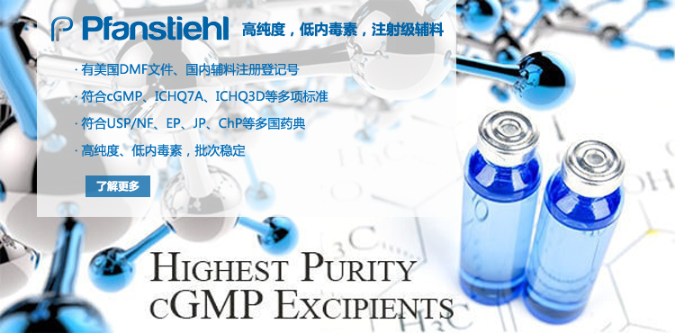 “熱烈祝賀Pfanstiehl的注射級甘氨酸Glycine(G-140)喜獲CDE登記號F20250000403, 這是Pfanstiehl產品獲得的第18個CDE登記號!”甘氨酸在醫藥輔料制劑中應用廣泛,, 可作為緩沖劑,增溶劑,穩定劑等,具有諸多優勢。Pfanstiehl秉承一貫高品質理念,為滿足全球生物制藥行業對于高品質甘氨酸的需求,隆重推出的注射級甘氨酸Glycine (G-140), 具有超高純度,超低內毒素,超低金屬殘留的特點,單獨檢測29種金屬離子,并且新增DNA,RNA,DNA酶,RNA酶和脂肪酶,亞硝酸鹽等多項質量指標的檢測,符合多國藥典規定(USP, EP, BP, JPE, ChP),可用于生物治療性藥物和疫苗的生產。產品信息:· 產品名稱:Glycine, High Purity, Low Endotoxin, Low Metals, USP, EP, BP, JPE, ChP (G-140)· 中文名稱:甘氨酸· 分子式:C2H5NO2· 分子量:75.07 g / mol· CAS號:56-40-6· 產品貨號:G-140產品特點: · 超高純度,超低內毒素,超低微生物含量,超低金屬雜質殘留· 質量指標新增DNA,RNA,DNA酶,RNA酶,脂肪酶和亞硝酸鹽檢測· 符合多國藥典:USP, EP, BP, JPE, ChP· 符合ICH Q3D標準· 符合GMP標準· 已獲DMF和CDE登記號 產品應用:· 緩沖劑· 穩定劑· 增溶劑如果您對Pfanstiehl注射級別Glycine G-140感興趣,歡迎聯系Pfanstiehl 中國區代理商北京西美杰科技有限公司獲得如下詳細的產品概況說明文件和測試樣品。Pfanstiehl Inc.最新產品系列如下,歡迎聯系北京西美杰科技有限公司獲取100g裝免費樣品。北京西美杰科技有限公司為Pfanstiehl中國代理,為客戶提供完善的技術支持與售后服務。歡迎撥打西美杰客服電話400-050-4006或者登陸網站www_xmjsci_com.cwnbav.pro了解更多信息。 更多>西美杰介紹
